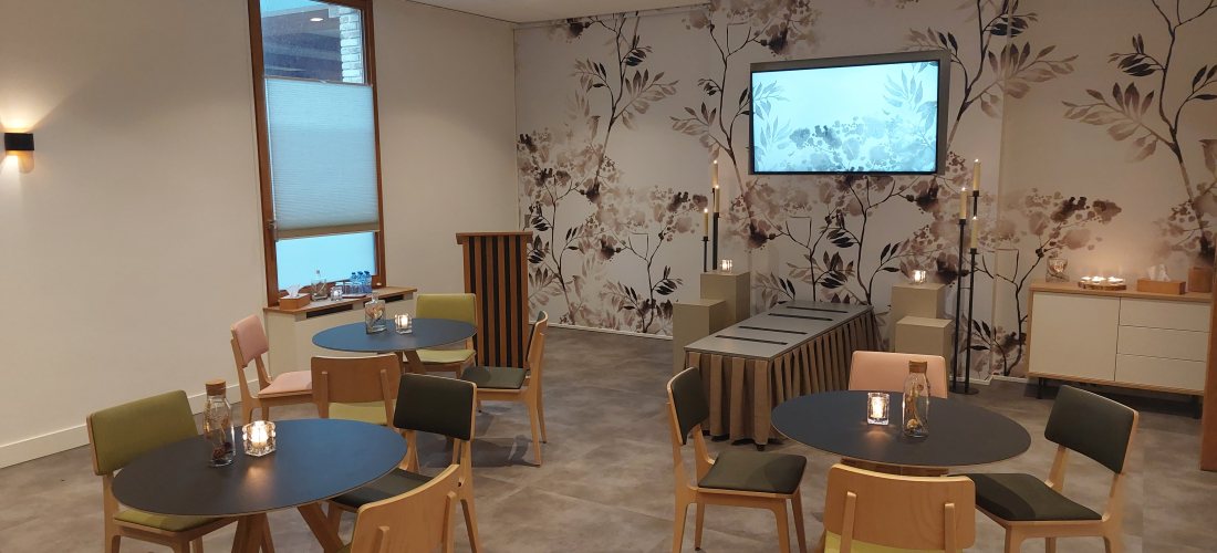 De Prelude aula is geschikt voor een afscheid in beperkte kring. Ongeveer 25 personen kunnen hier in een gemoedelijke omgeving afscheid nemen.
